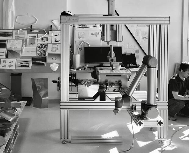 Специализированный производитель металлических конструкций Stilfold использует роботизированные руки в процессах, которые он называет «промышленным оригами», чтобы разработать недорогие способы создания вертипортов. (Изображение: Stilfold)