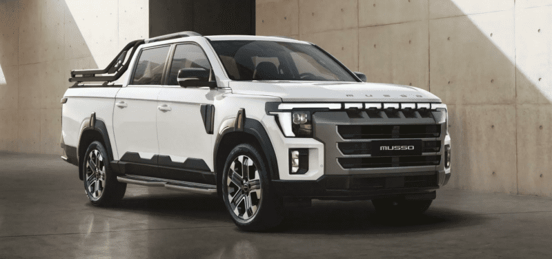 Компания планирует превратить Musso в суббренд электрических, гибридных и бензиновых грузовиков. Дизайн передней части заимствует черты Ford F-150 со светодиодными фарами, а пятисекционная решетка радиатора напоминает джип с подсвеченными ламелями.