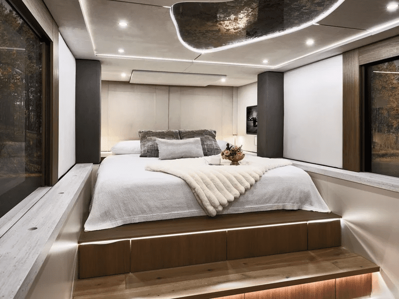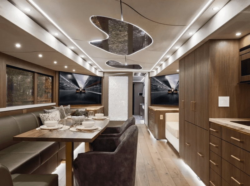 В США создали эксклюзивный автодом представительского класса. Внутри есть бар, гардероб, гостиная, камин и два домашних кинотеатра.