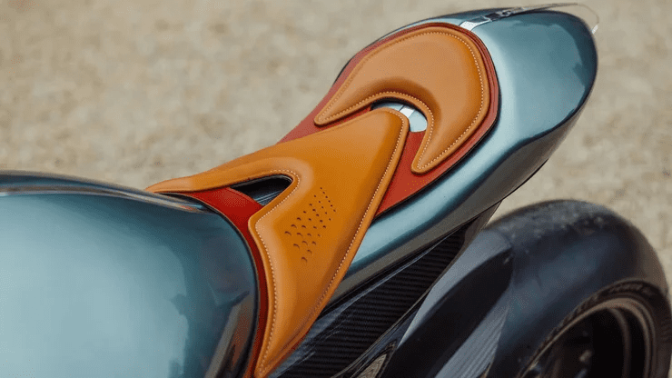 Мотоцикл Aston Martin имеет футуристический дизайн, а в его конструкции использованы углерод, алюминий и титан, поэтому вес составляет всего 180 кг.