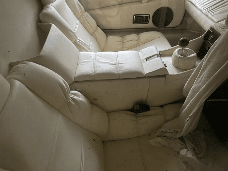 Состояние Lotus Esprit оставляет желать лучшего и требует восстановления. Его тело покрыто слоем грязи и плесени. Зато белый кожаный салон хорошо сохранился.