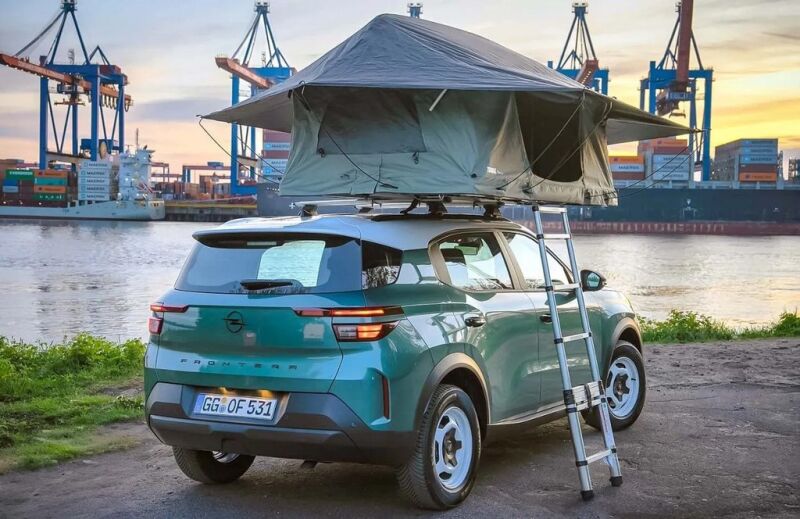 Как Motor1 стал известен как вариант для Opel Frontera 2025, появилась палатка предгорья Thule на крыше. Он может быть установлен на рельсах, которые могут выдержать 240 кг.