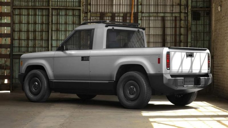 Pickup Slate Truck получил простой геометрический силуэт, прямые линии и круглые фары-все модные вещи, которые мы любим сегодня. Известно, что в салоне есть два стулья, а позади — длинный отсек для нагрузки.