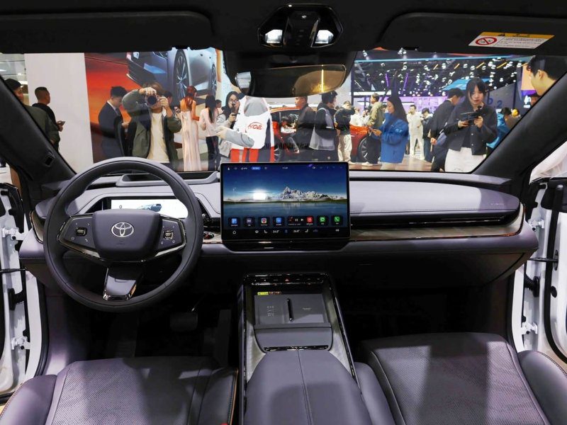 Размеры bZ7 составляют 5130 мм в длину, 1965 мм в ширину и 1506 мм в высоту с колесной базой 3020 мм, что даже больше, чем у Camry. По бокам профиль автомобиля подчеркивается объемной линией талии, полускрытыми дверными ручками и i GAC — Toyota. bZ7 также оснащен системой распознавания лиц, проекционным дисплеем и многочисленными динамиками кабины.