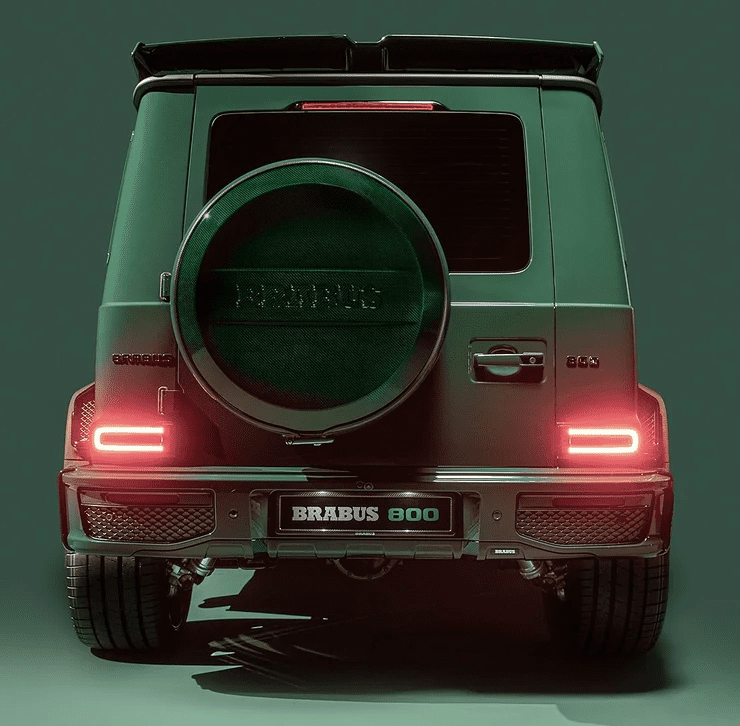 Тюнинг «Gelendvagen» был выполнен по уже знакомому рецепту Brabus. Внедорожник получил фирменную решетку радиатора, более агрессивные бамперы, а также карбоновый капот, обвес, спойлер и декор. Крышка запасного колеса также была изготовлена из углеродного волокна.