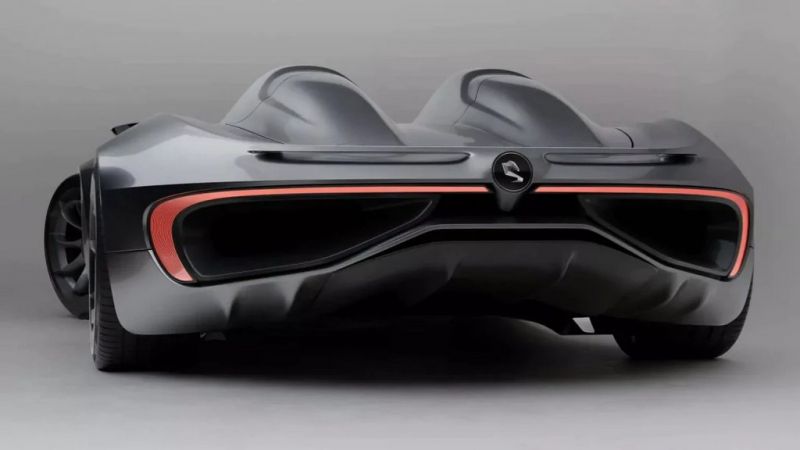 Выхлоп Supercar удаляется с передних крыльев. Оригинальный внешний вид имеет тонкие фонари по всей ширине тела.